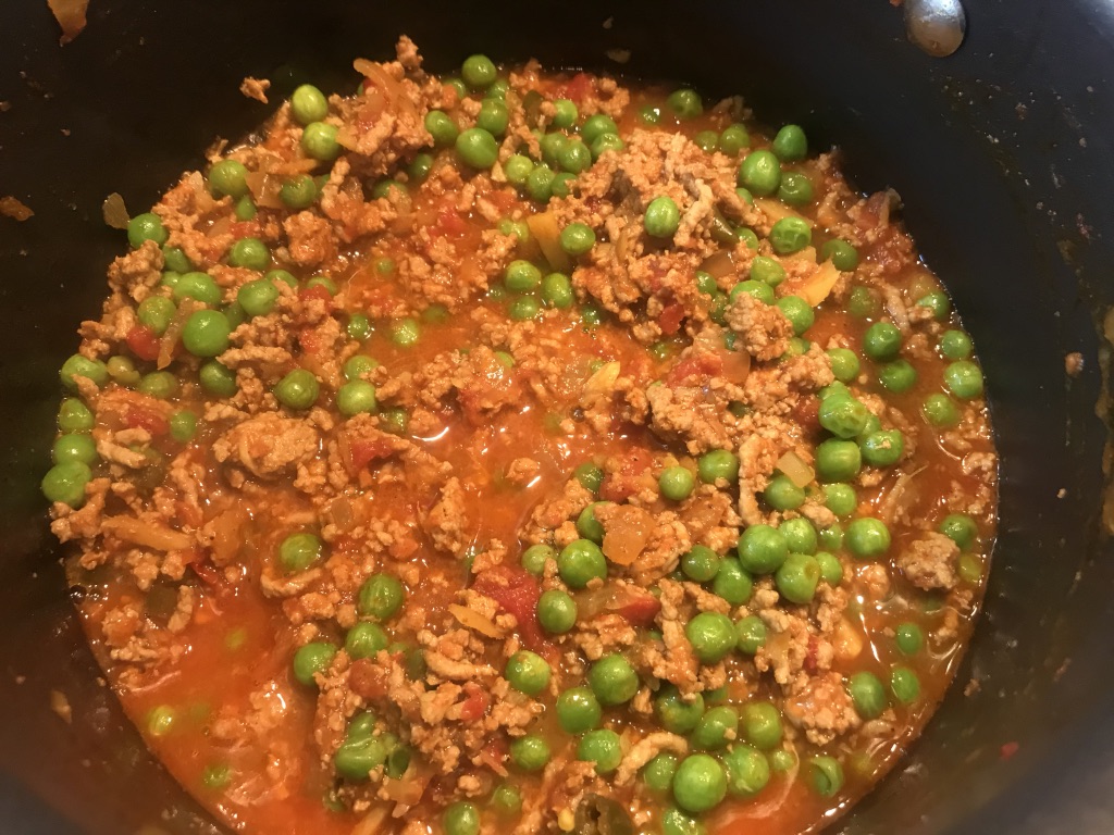 - Add the frozen peas and stir into the sauce, cook for about 5 mins.