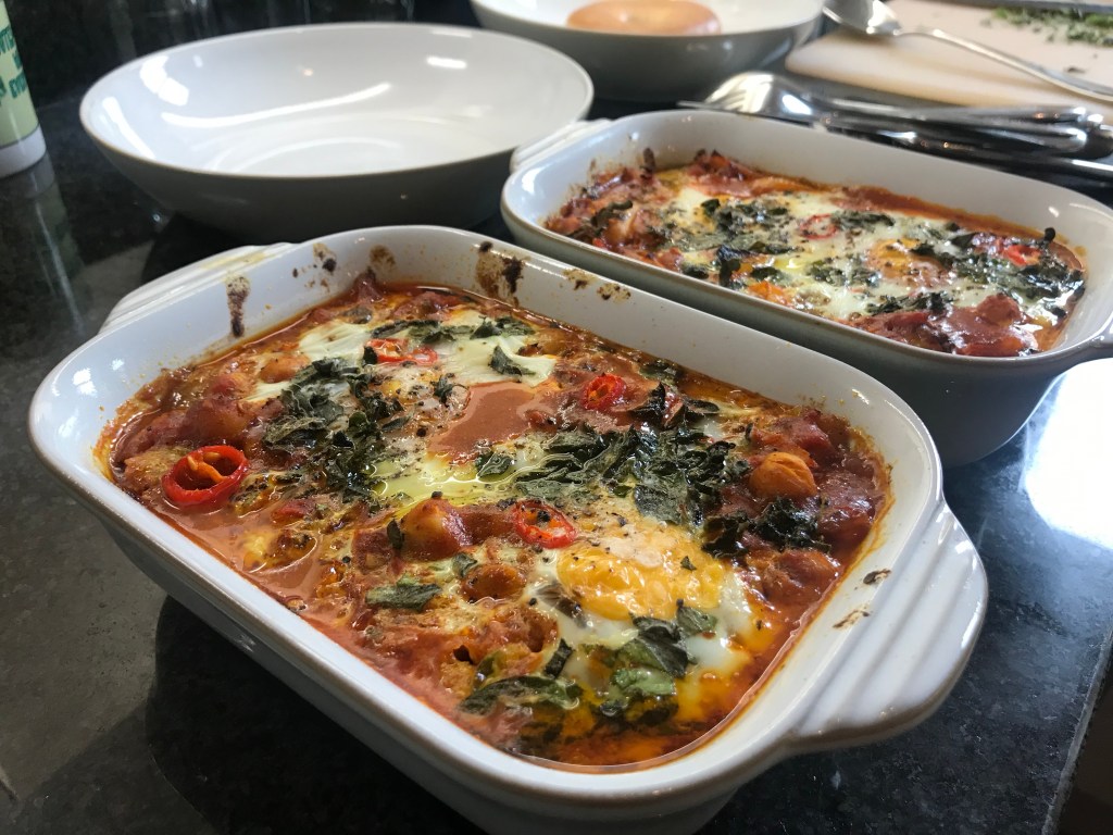 It is a bit tricky to get a nice runny yolk and ensure the whites are cooked, but if you manage to then this is a sensational breakfast! (It’s good even if the yolk hardens somewhat!) This dish is great with some good bread/flatbread for dipping.